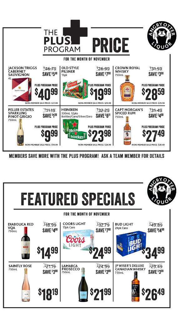 Good news, our shelves are filling back up again! The liquor strike is over, your favourites are back, and the holidays are around the corner. Plus Program Members enjoy exclusive November savings, stop by and ask how you can save even more.